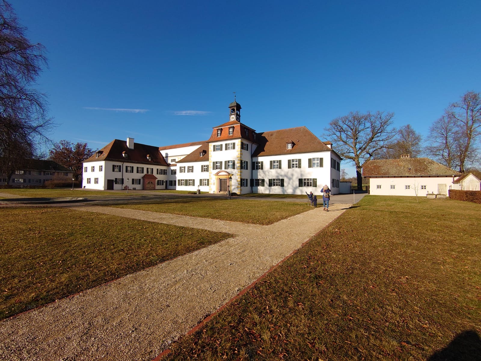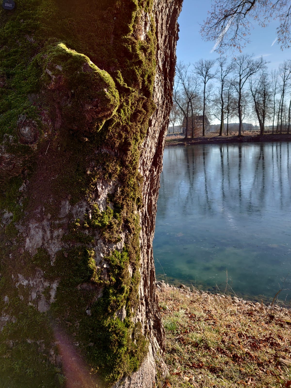 Der Rundweg führt uns nun an mehreren Weihern entlang bis hin zum wunderschönen „Weißen Schloss“, in dem jetzt eine Fachakademie für Hauswirtschaft und Ernährung beheimatet ist. Der Sohn hat bis hier mittlerweile schon 9 Bäume gedanklich abgehakt. An jedem Baum befindet sich ein Hinweisschild mit den jeweiligen Merkmalen, Besonderheiten und natürlich der Charaktereigenschaft.