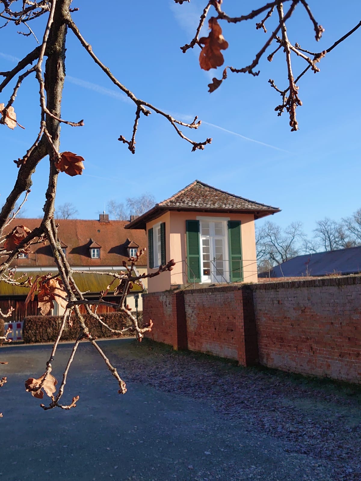 Jetzt kam der zweite kleine Wermutstropfen, wenn man einen Naturlehrpfad über Bäume im Winter macht: Neben lauter blattlosen Ästen befinden sich natürlich auch alle südländischen Baumarten, in unserem Fall die Zypresse, Zeder, Olive & Feige, im Winterschlaf und sind irgendwo schön warm zum Überwintern untergebracht. Aber nicht so schlimm, der Schlosspark war trotzdem schön zum Durchspazieren und außerdem stand da ja auch noch der Triesdorfer Kärwabaum… Zählt man den jetzt mit?