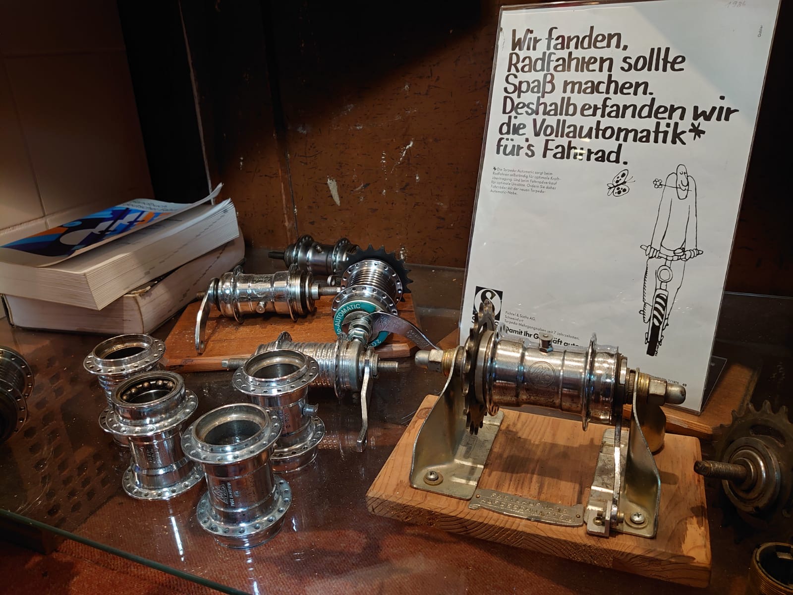 Das Besondere der Ausstellung: Wenn der Radsherr mal wieder ein neues Stück ergattert hat, ist die Geschichte dahinter, das Erste was ihn interessiert. Wer hat es benutzt, wo wurde es gefahren, was wurde später damit? Aufpolieren und restaurieren? Fehlanzeige! Das Rad bleibt genau so wie es ist. Und wenn es an einer Stelle mit Klebeband fixiert wurde, dann hatte das auch seinen Grund und darf bleiben. Und genau diese Dinge erzählen uns heute die vielen kleinen Geheimnisse früherer Zeit.