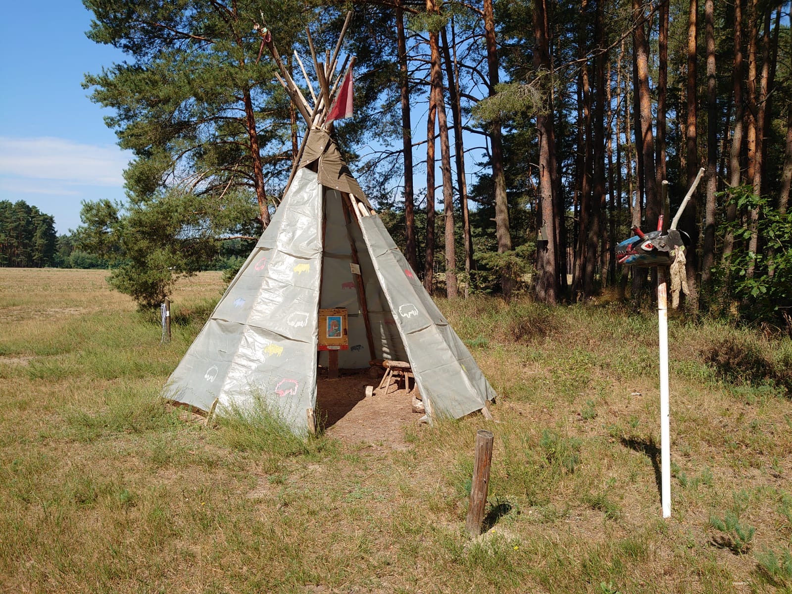 Doch der kleine Abstecher lohnt sich und sollte nicht verpasst werden! Mitten im Wald versteckt sich dort auf einer kleiner Lichtung ein Indianerdorf mit einem großem Tipi und vielen aus Naturmaterialien gefertigten Spielstationen. Der perfekte Ort für die Vesperpause.
