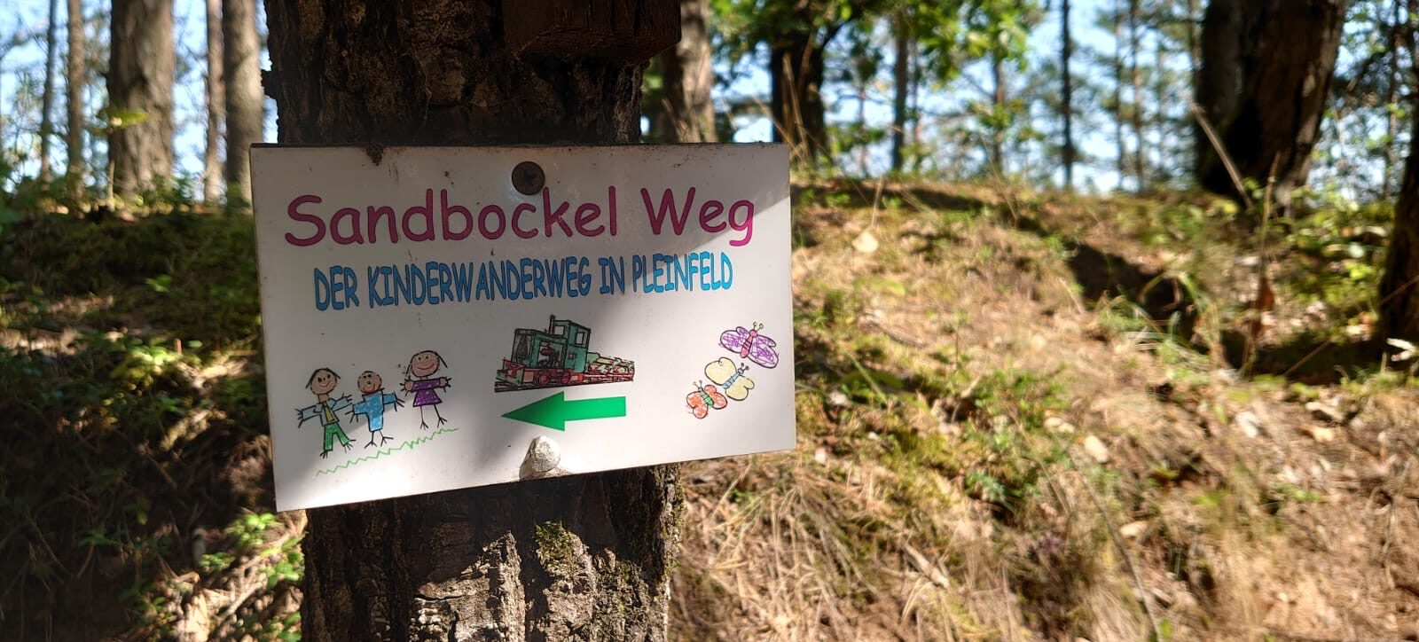 Der Sandbockelweg ist perfekt für Kinder. Selbst die ganz Kleine rennt nach einiger Zeit eifrig voraus um nach der nächsten Station zu suchen. Der Weg ist reichlich gespickt mit Überraschungen und auch für die Erwachsenen ist der Pfad lehrreich und interaktiv. Es gibt sogar eine Witzestation, an der man seinen eigenen Witz mitbringen und hinhängen kann. Wahrscheinlich kommt der Erlebnispfad deshalb so gut bei allen an, da er von den Kindern der Grundschule Pleinfeld selbst mit geplant und gestaltet wurde. Der Pfad wird regelmäßig von den Schülern als Lehrpfad genutzt und die dort ausgehängten Themen wechseln immer mal wieder je nach Jahreszeit oder aktuellem Unterrichtsstoff der Schule. Als wir den Weg erkundet haben waren es zum Beispiel die Dinosaurier die uns auf dem Weg begleitet haben.
