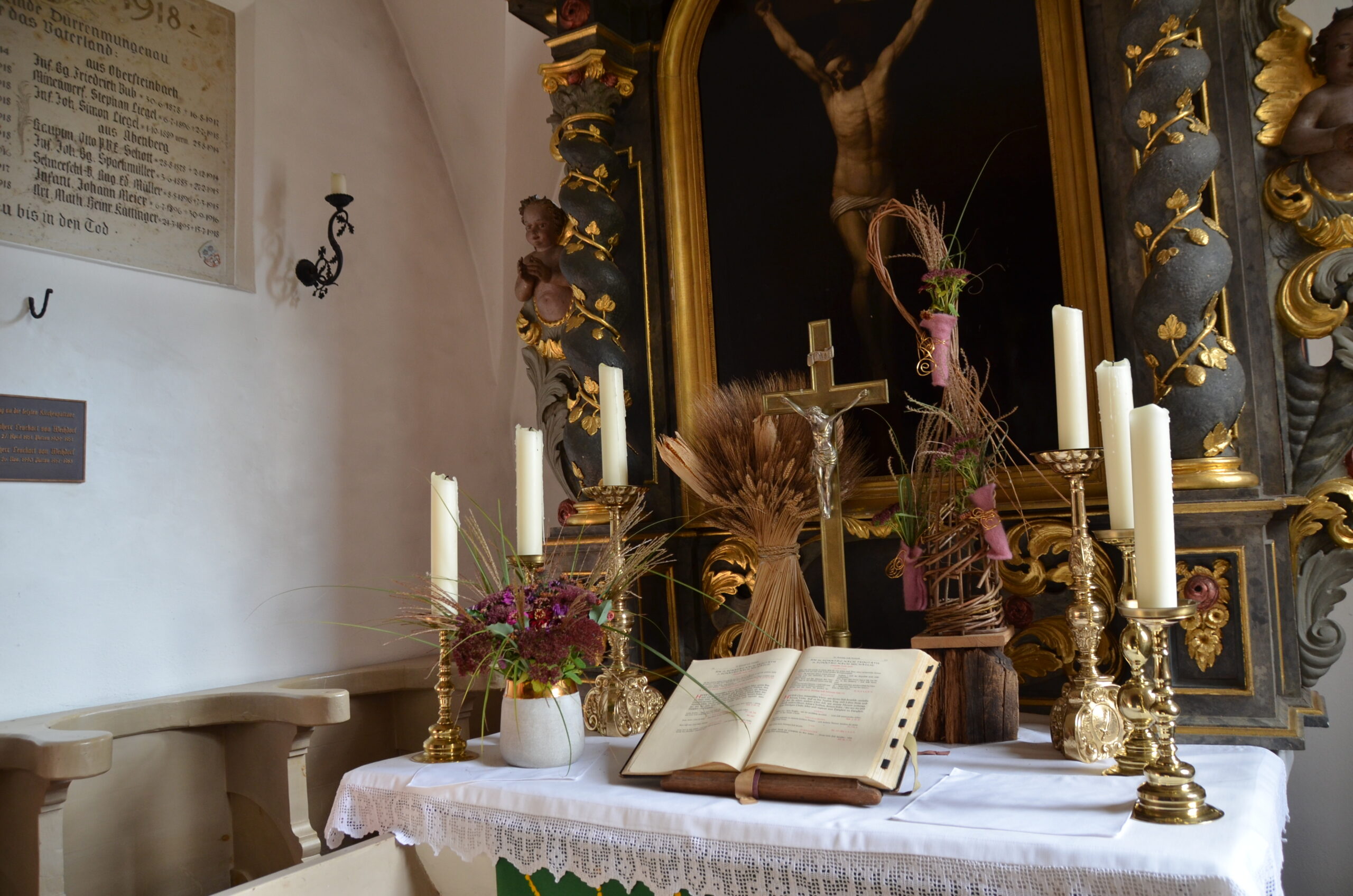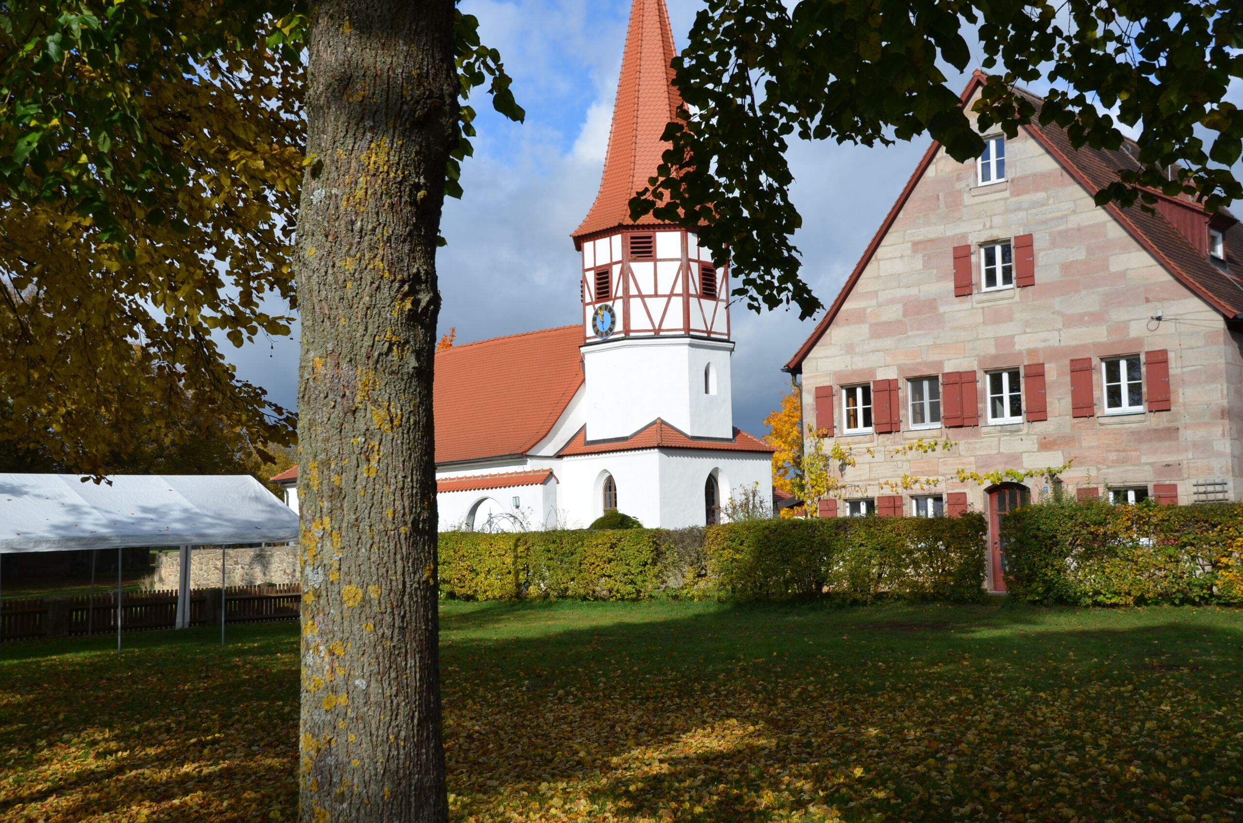 In Dürrenmungenau lohnt sich ein kurzer Abstecher zum Wasserschloss und zur kleinen St. Jakobus Kirche nebenan. Besonders schön ist hier die alte Empore und die gut erhaltenen hölzernen Bankreihen neben dem Altar.
