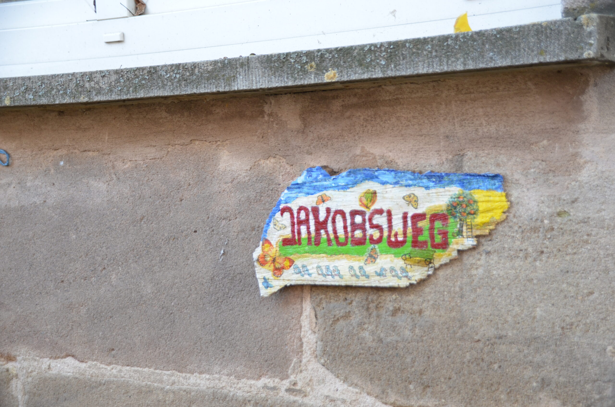 An vielen Stellen findet man Hinweise zum Jakobsweg, oder einfach nur zum Glücklichsein. 🙂