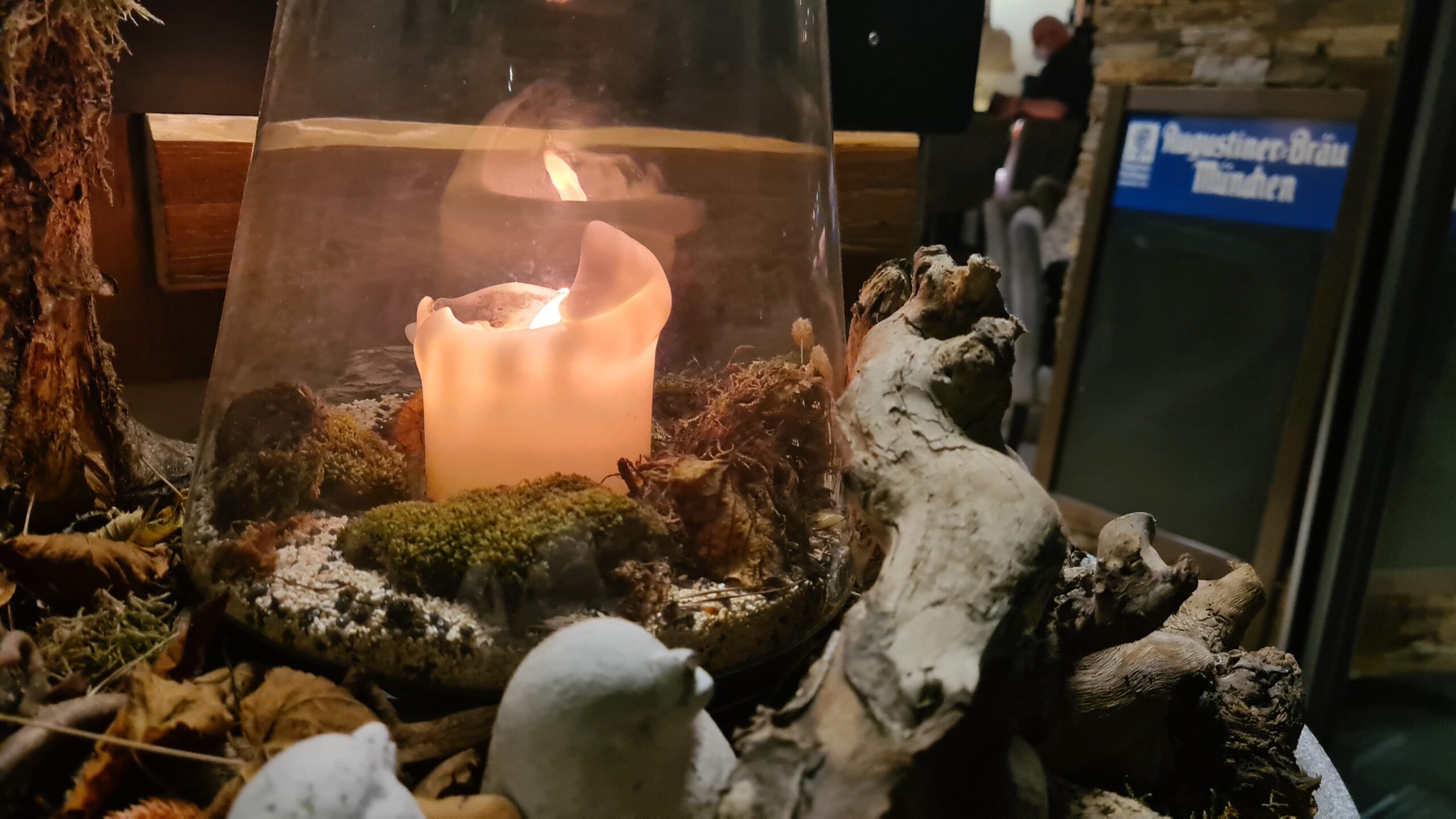 Das liegt zwar zum einen am leckeren Essen, dazu aber gleich mehr. Zuerst würde ich gerne auf die tolle Einrichtung der Genusshütte eingehen. „Hütte“ ist nämlich das gestalterische Element, das sich hier durchzieht. Das freistehende Gebäude am Heidecker Volksfestplatz wurde neu gebaut und von vorne bis hinten als gemütlich-moderne Gastronomie konzipiert. Die maßangefertigte Innenausstattung greift mit Holz und Naturstein das Thema Südtirol auf, und sogar eine als Hütte gestaltete Sitznische findet man im Heidexx. Aus Fichtenholz, mit Fenstern und Geweihen an der Wand.