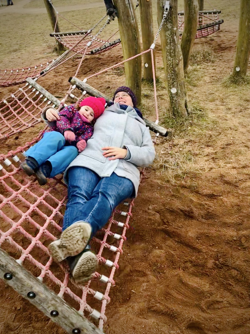 Gut, ich hätte nicht gedacht, dass ich mich mal bei -0,5 Grad Celsius und Niesel-/Nebelwetter in eine Hängematte lege und es auch noch toll finde. Aber es macht wirklich Spaß und fühlt sich gleich ein bisschen nach Sommer an. Also eine begrenzte Zeit. Bis die Kälte doch hochkriecht.