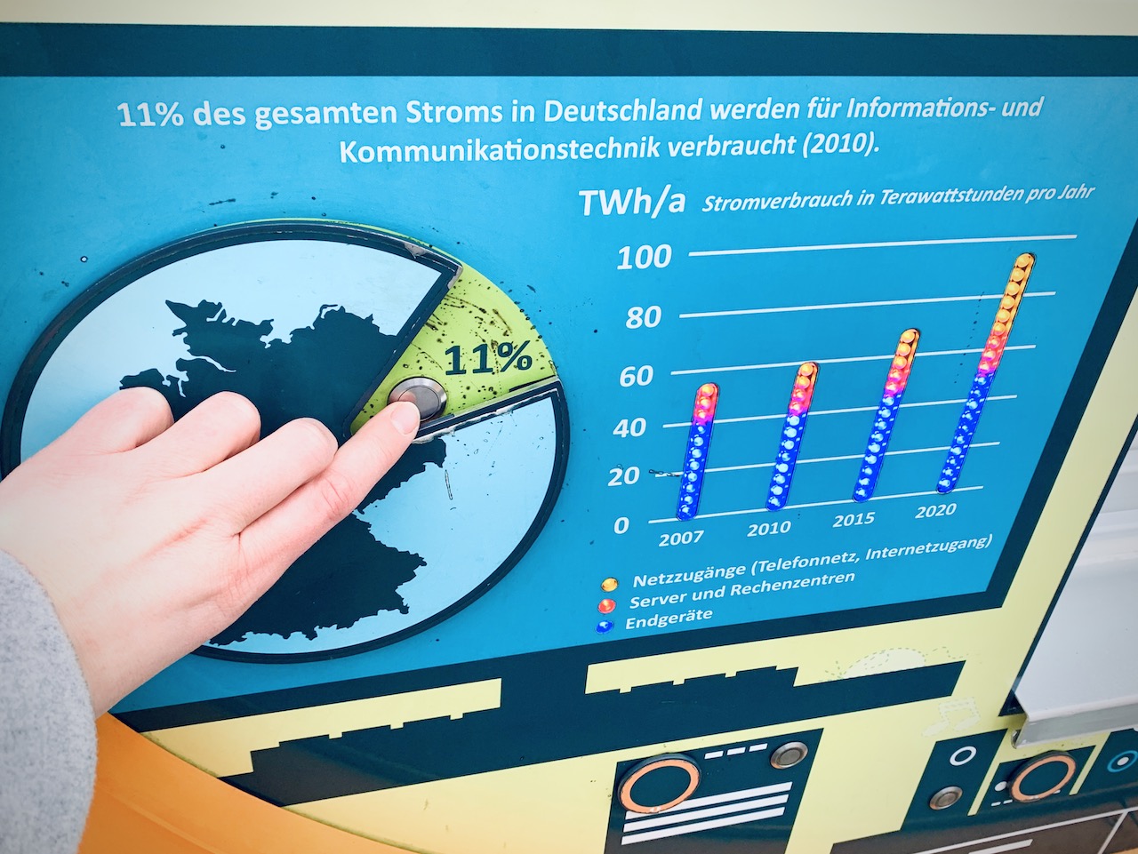 Mit interaktiven Stationen lernen wir noch einiges zu Windkraft, Geothermie, Biomasse, Sonnenenergie und Wasserkraft. Auch Themen wir Stromverbrauch und Lebensmittelverschwendung werden aufgegriffen. Besonders hat uns dabei gefallen, dass der Sprecher der Stationen im tiefsten fränkisch die Informationen gibt. Super authentisch.