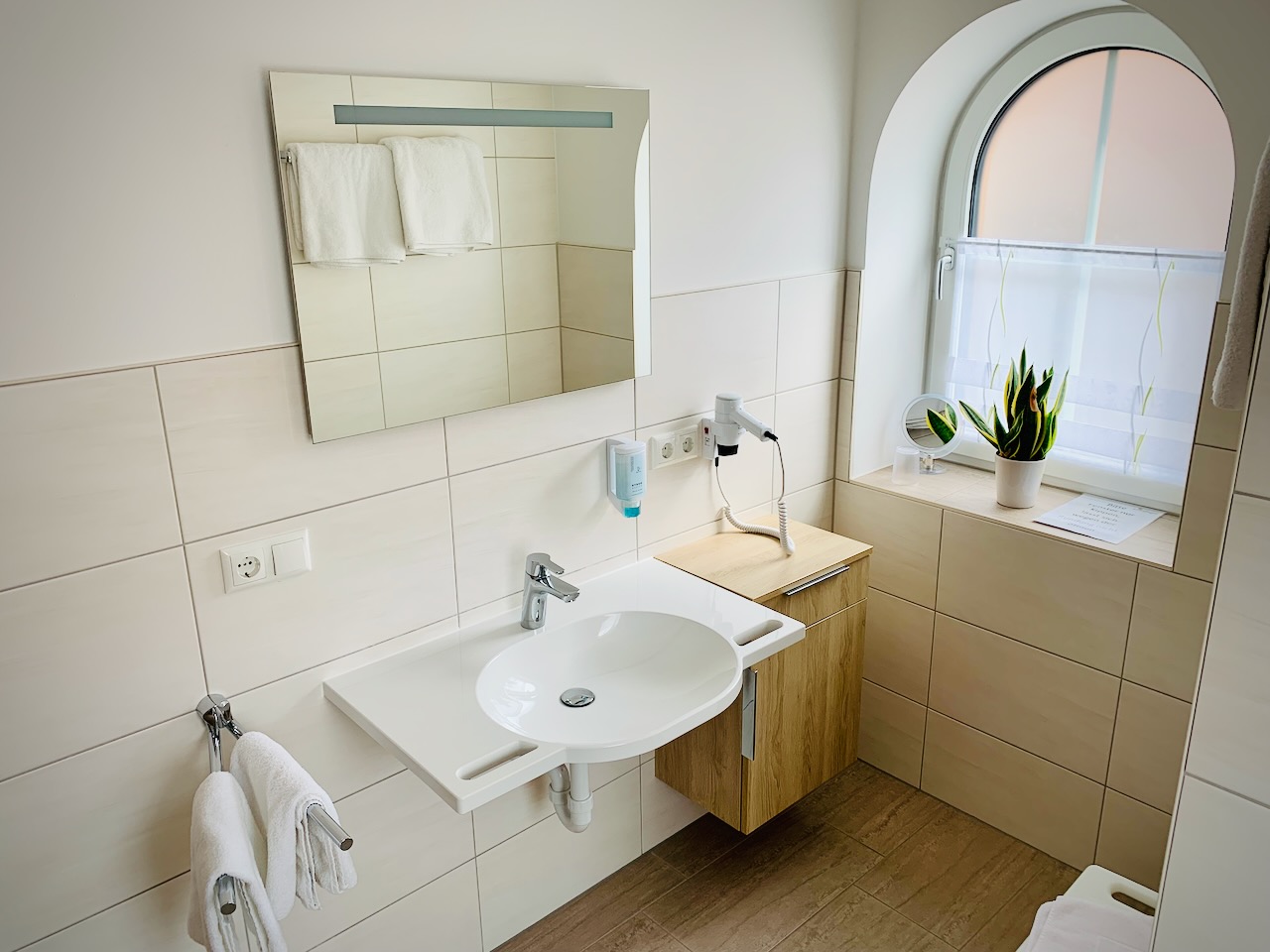 - Grundausstattung Badezimmer: Haartrockner, Handseife, Handtuchhalter, waschbare Vorleger, Abfallbehälter, Kosmetikspiegel, mind. 2 Toilettenrollen