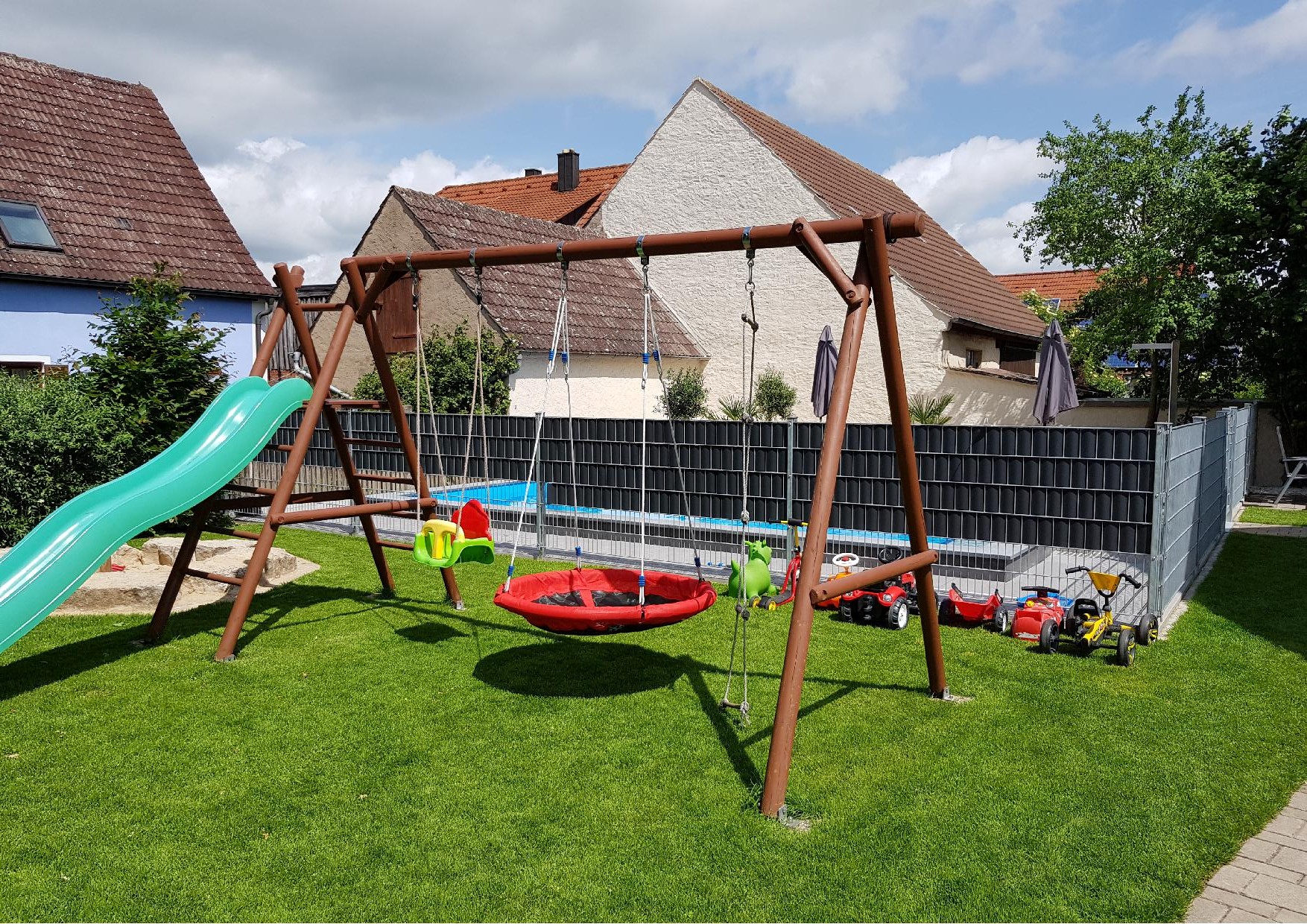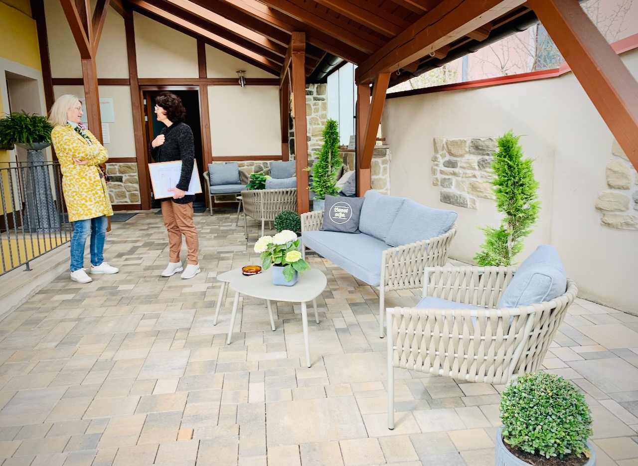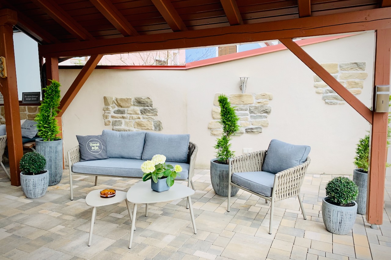 Abschließend geht es in den Außenbereich. Hier kann Frau Winner richtig punkten. Ein super gemütlicher Biergarten, der zum Gasthof gehört, ein Kinderspielbereich und sogar ein Salzwasserpool mit Liegefläche. Hach, da möchte man doch gleich ein bisschen Urlaub machen.