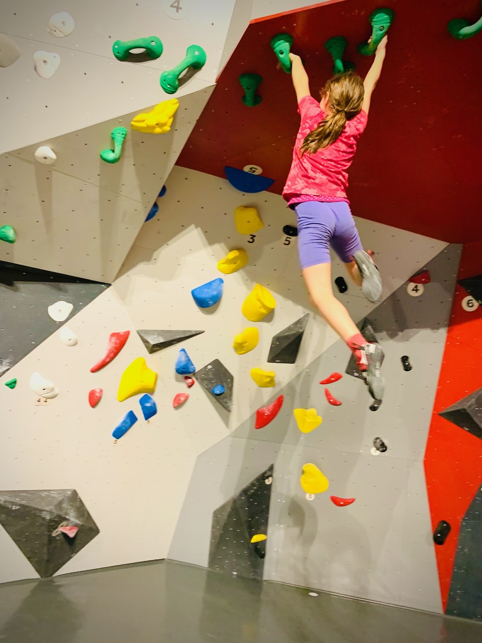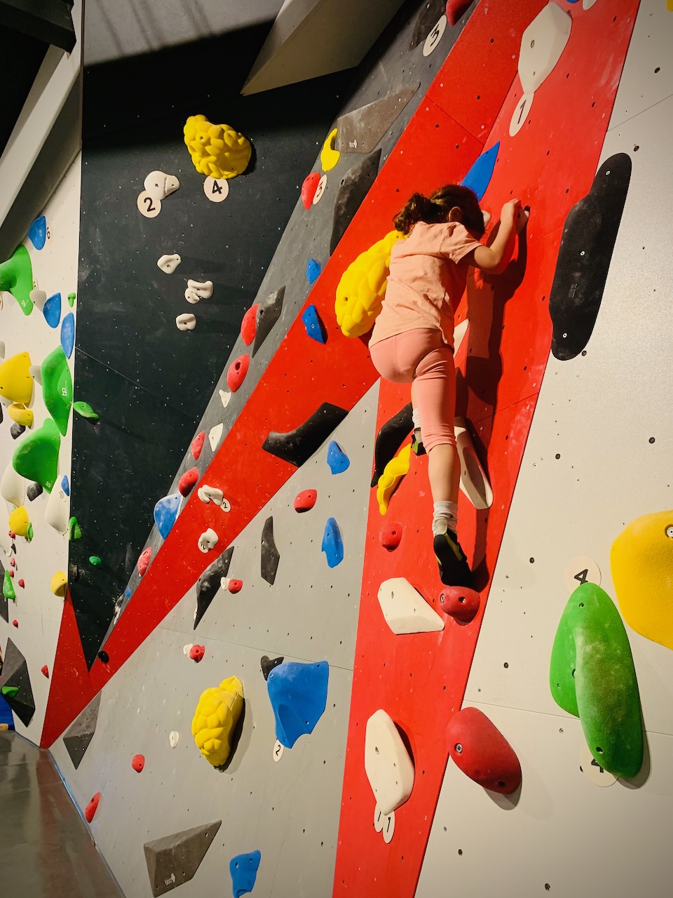 Unsere Große meistert mit ihren 9 Jahren schon richtig tolle Strecken und ist super stolz, auf das, was sie alles schafft. Für kleinere Kinder sind manche Routen natürlich noch etwas zu schwer und die Griffe für kürzere Arme/Beine zu weit auseinander. Doch das stört überhaupt nicht. Unsere Kleine beschließt einfach „bunt“ zu klettern: sie nimmt die Griffe, die sie erreichen kann und kommt so auch bis ganz nach oben. Sollte die Kraft beim Runterklettern nachlassen, auch kein Problem. Einfach abspringen. Der Boden ist überall super gepolstert.